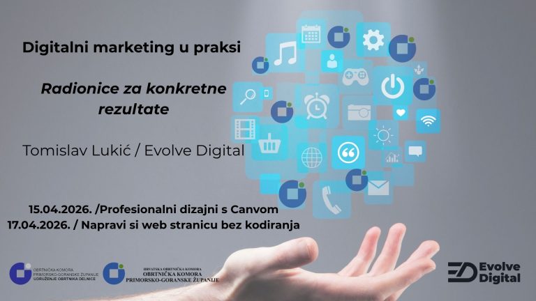 Obrtnička komora Primorsko-goranske županije i Udruženje obrtnika Delnice, uz podršku Grada Delnica organiziraju ciklus edukacija –Digitalni marketing u praksi – radionice za konkretne rezultate, namijen